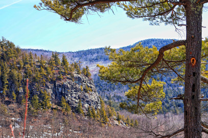 This moderate 3.5-mile loop is located off the Kancamagus Highway near Conway, NH. The trail begins with a walk through the historic Albany Covered Bridge, then follows a loop filled with glacial erratics, steep rock walls, scenic views of the Passaconaway Valley, and peaceful pine forest. The giant boulders scattered along the path were transported here by glaciers and left in remarkable spots. It's a great hike for kids, who will have fun climbing on and around the massive rocks and caves.