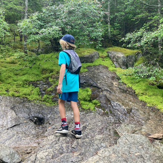 Finn came up with the idea of a stretcher made out of some sticks and the boys' backpacks. I thought maybe I could send the boys back to the car and I could sleep on the mountain with Romy (although I didn't actually mention that plan out loud). Then Henry suggested we just start hiking and maybe she would eventually join us out of the fear of being left behind. This last option was the thing that got our big girl to move. When we heard her coming along behind us, we were all yelling with joy. It was a big win for us. Although we had miles to go, we knew if we could just get back to the Champney Brook Trail, the water would revive her.