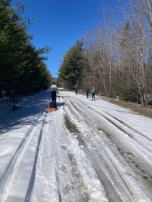 Here are some shots of the snowy access road on the ski-in and some muddy sections on our return trip.